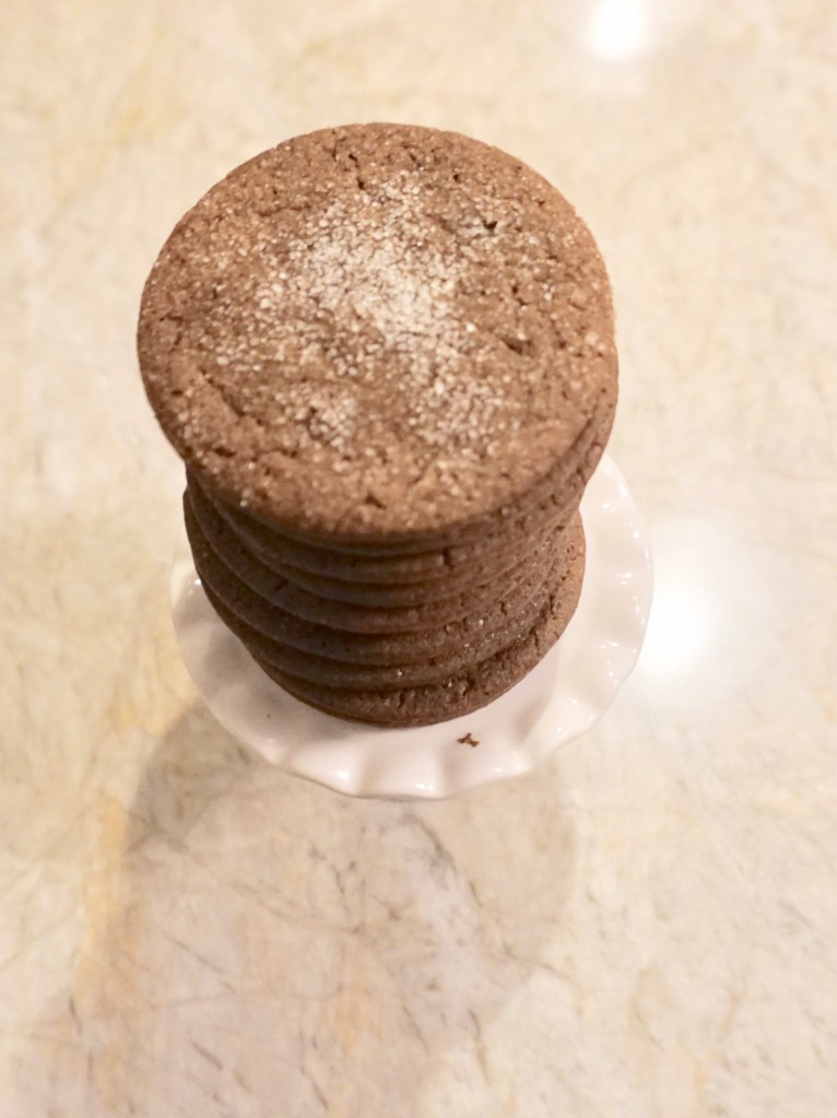 First of all, I really don’t like crunchy cookies. I feel like when gingerbread cookies are crispy and crunchy, they always end up tasting burnt to me. Also, I like a strong spice level, where you know it is there, but not so much it burns your tongue or makes you want to chug a glass of milk afterward. I searched around for some chewy gingerbread cookie recipes and landed on one that I think comes from Cooks Illustrated originally. As I searched for versions of it though, I saw it listed on Cook’s Country website and on Cook’s Illustrated and credit given to America’s Test Kitchen. When I checked my complete cookbook of ATK and CC – I couldn’t find it listed in either so I’m guessing that it is from Cook’s Illustrated (even though I think they are all the same company). I pulled ideas from a few blogs about how to make these cookies and I am very pleased with the results.
