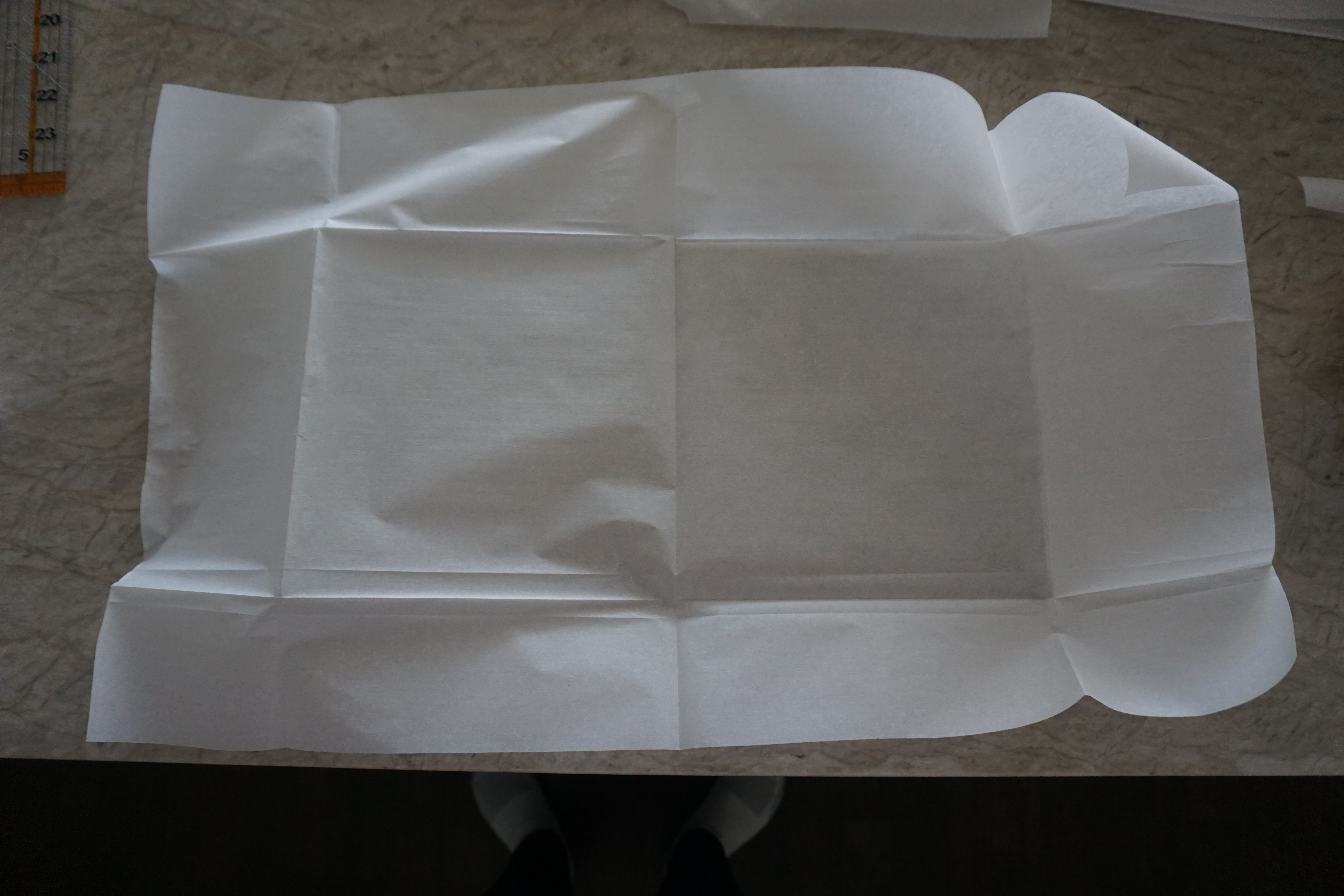 - Fold a 24-inch piece of parchment paper in half to form a 12-inch rectangle. Fold over the 3 open sides of the rectangle to form an 8-inch square with enclosed sides.