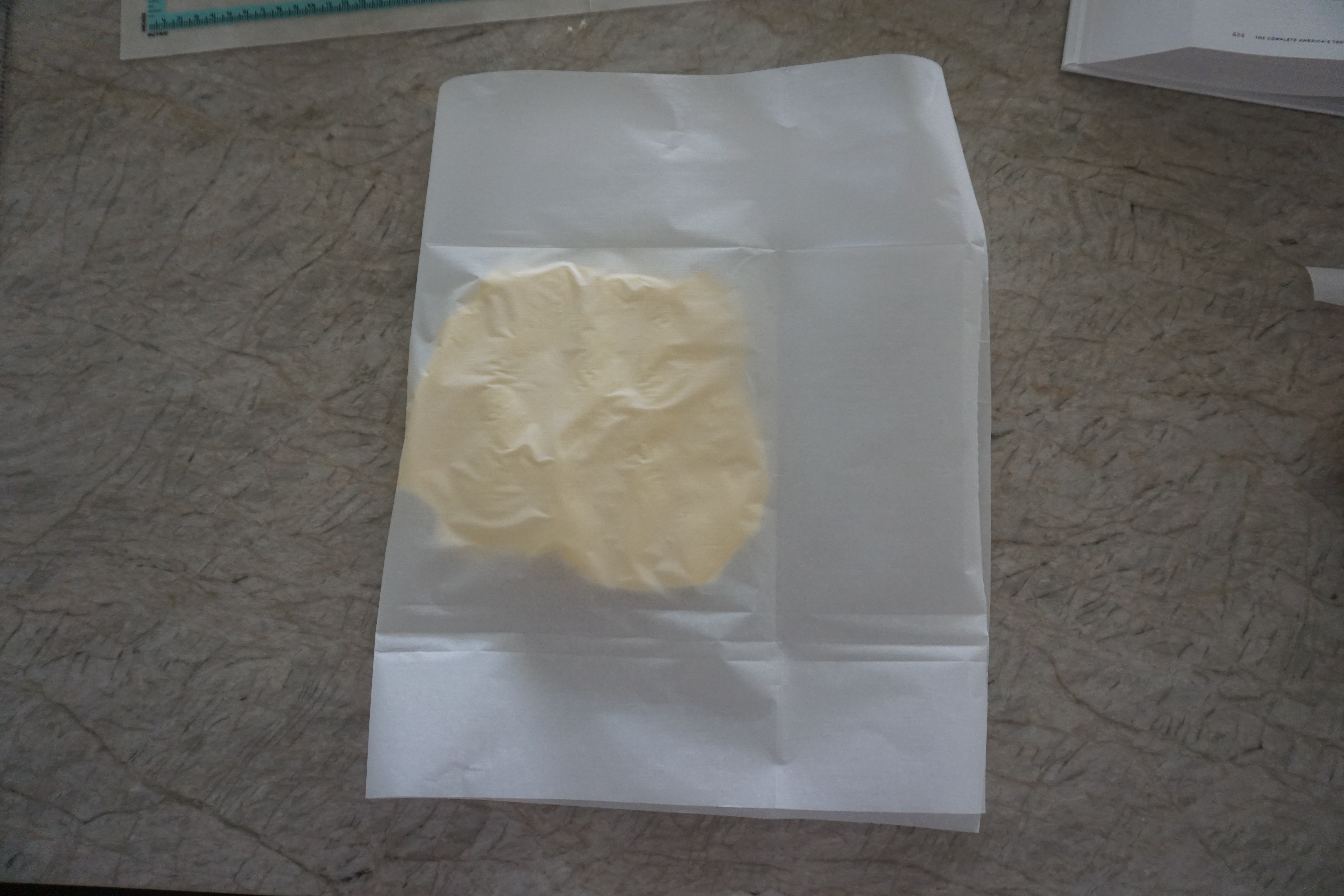 - Put the wrapped butter block back in the fridge for at least 45 minutes.