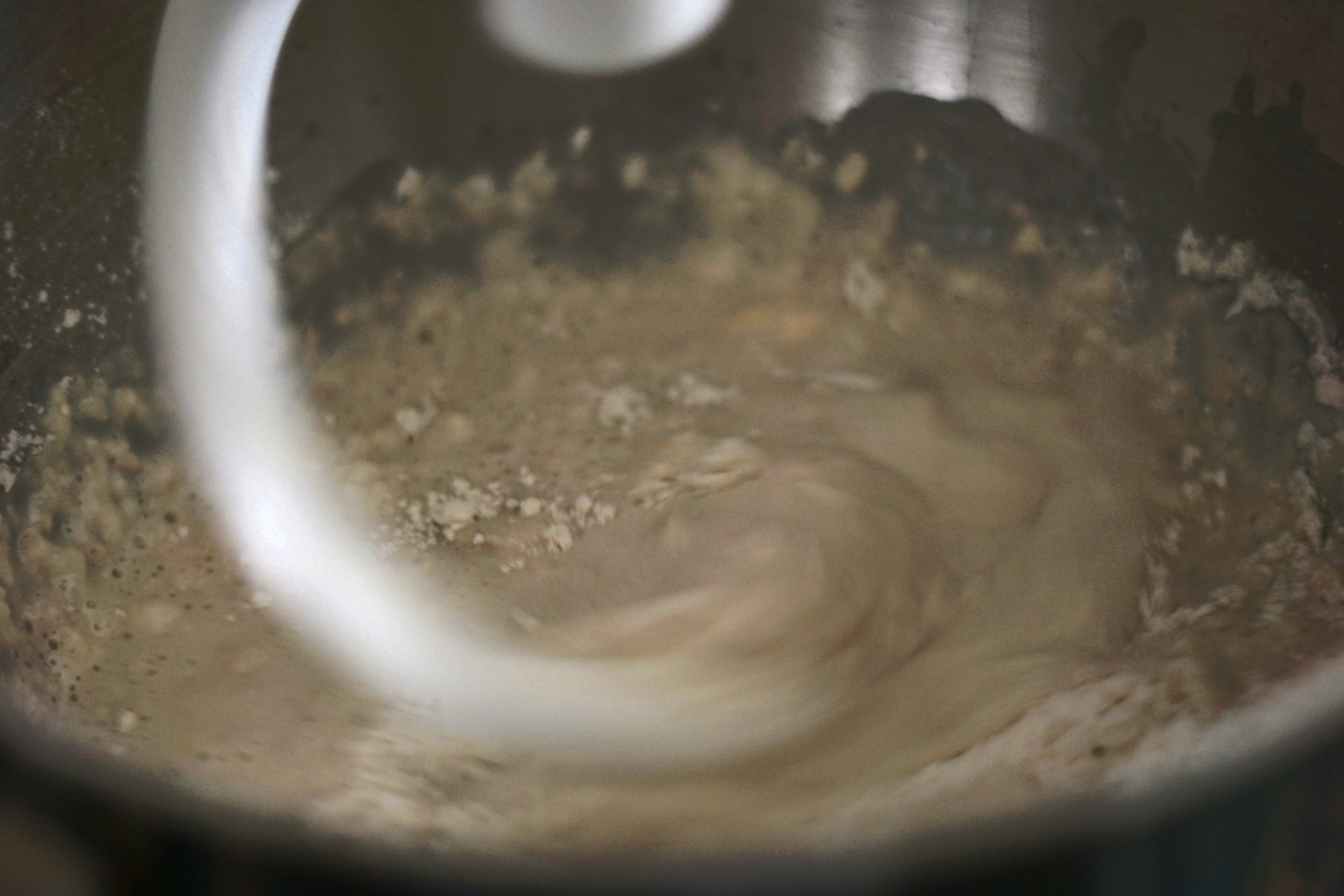 Mix all the ingredients together and then let the mixture sit in the bowl for 6 – 8 minutes until you see the yeast bubble and bloom. This ensures that your yeast is alive and will continue to work and grow throughout the recipe. If this doesn’t happen you may need new yeast if yours is too old and has died. You may also need to make sure you check the temp of your milk and water combo – if it is too hot it will kill the yeast also (aka – the first cinnamon swirl bread I made a while ago).