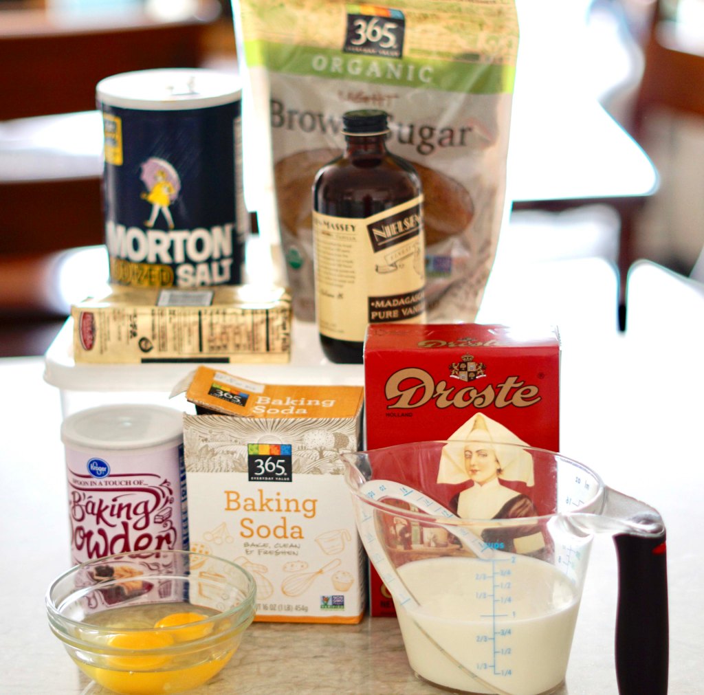 The ingredient list is back to the basics again, butter, brown sugar, granulated sugar, egg, egg yolk, vanilla, buttermilk (which I didn’t have so I made my own with milk and white vinegar), baking soda, baking powder, table salt, dutch process cocoa powder and all purpose flour.