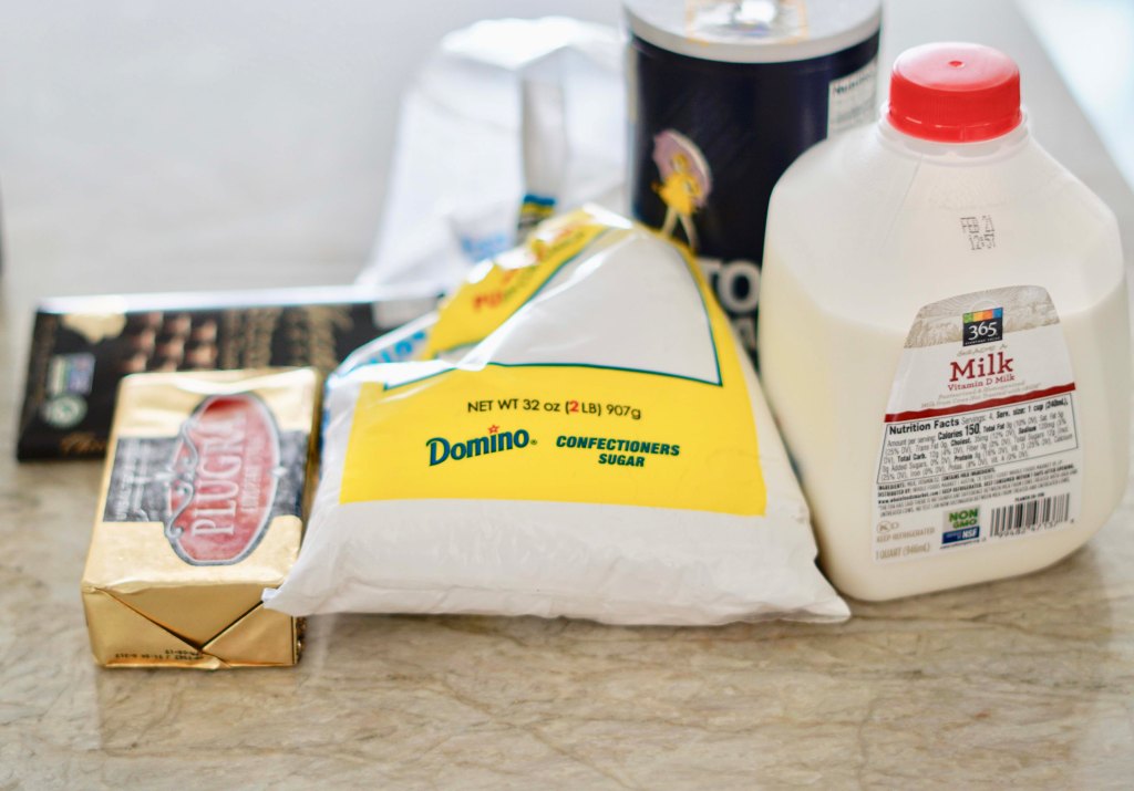 I added the powdered sugar and butter to a bowl and used a hand mixer to mix them together until they created a smooth and light mixture. It is tempting to want to add moisture right away, but resist! It will come together in the end. Then I added the melted and cooled chocolate (I microwaved it on 50% power for 25 seconds and then mixed it as much as I could and then gave it 5 more seconds at 50% power and finished mixing and melting it all), milk and vanilla.