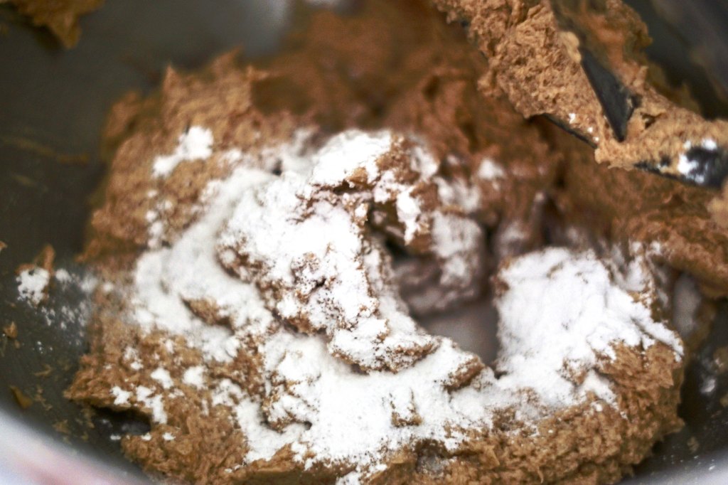 Next, I beat in the egg yolk and egg along with 1 teaspoon vanilla until they were combined. I scraped down the bowl and then added in 1/4 teaspoon baking soda, 3/4 teaspoon baking powder and 1/2 teaspoon table salt. I mixed this until it was very well combined.