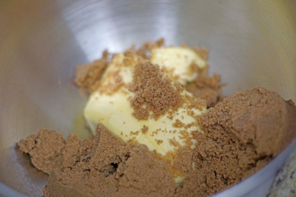 This recipe follows the basic butter and sugar creaming method of making sure that all of the brown sugar is throughly incorporated into the butter and the mixture is light and fluffy. Then the eggs are added and the mixer is turned up high to make sure they are all whipped into the butter and sugar mixture.