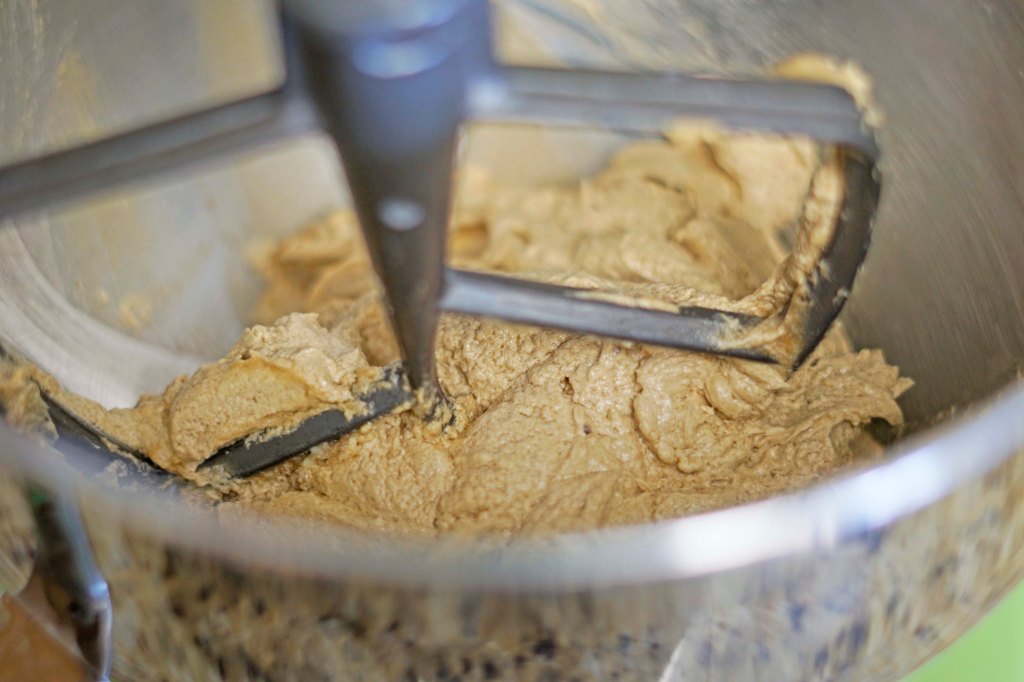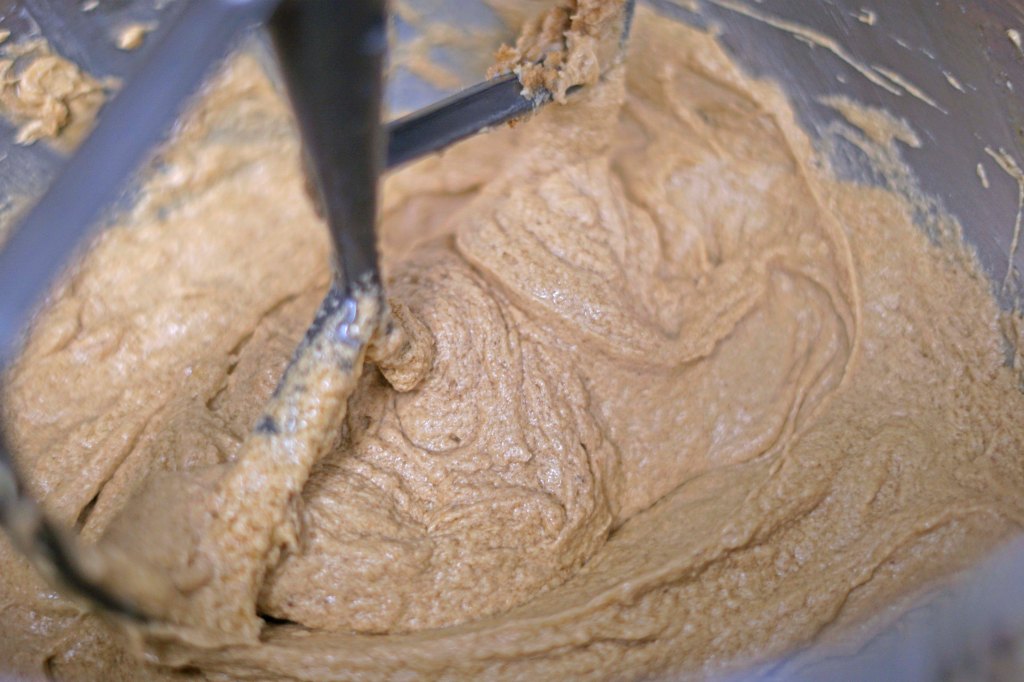 - In a mixer fitted with a paddle attachment beat together the butter and brown sugar until throughly combined and light and fluffy. Then add the eggs and beat on high to make sure that they are well combined. Add the molasses and vanilla and whip on high again to make sure combined. Scrape the bowl down as often as needed during all these steps.