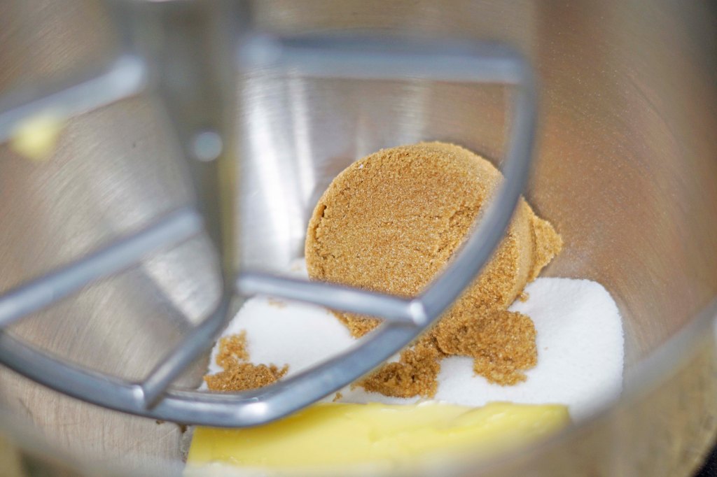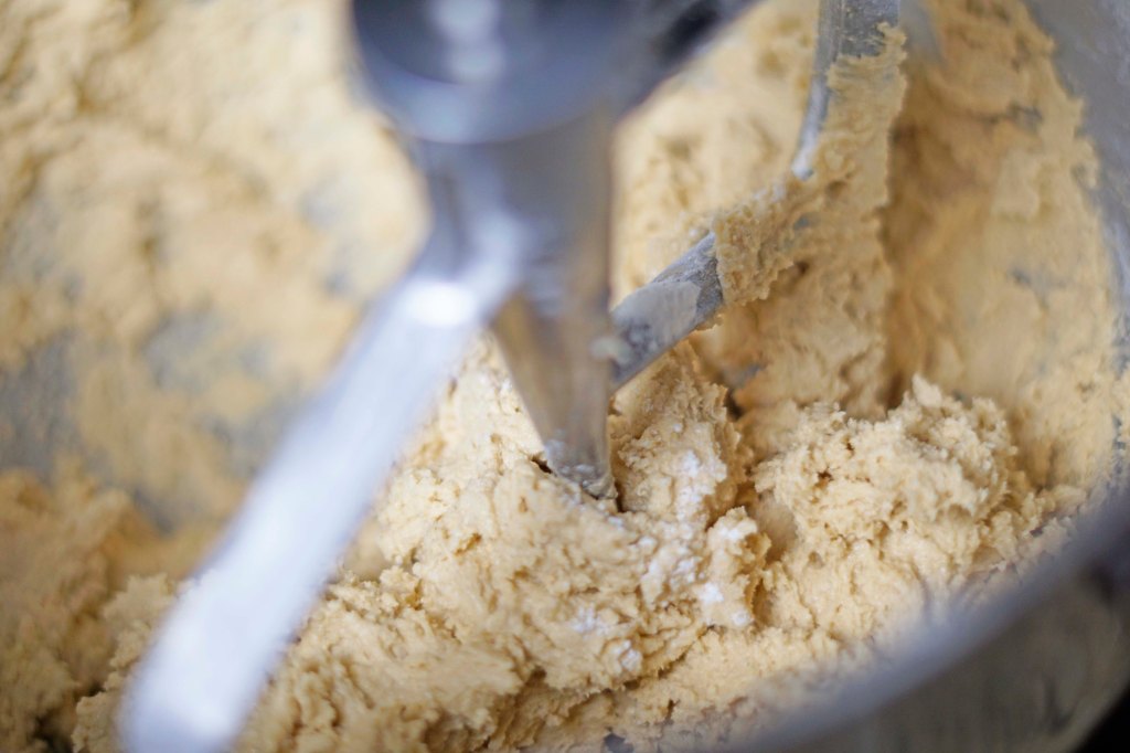 - Cream the butter and sugars together in a stand mixer fitted with a paddle attachment. Add the egg and vanilla and whip the mixture on high until light in color and fluffy in texture.