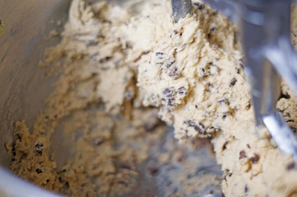 - In a small bowl, mix the dry ingredients and add it to the mixture while the mixer is on low. Scrape down sides as needed. Add the chocolate chips and mix until combined. Put the bowl with in the fridge while preparing the Oreos.
