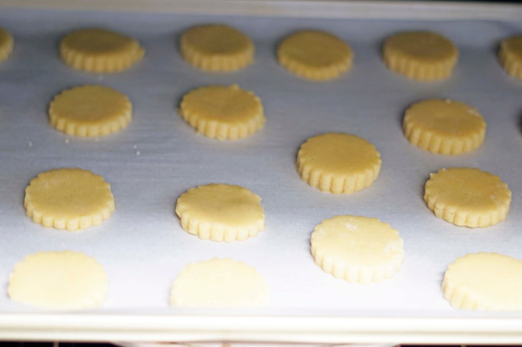 - Cut out desired shape of cookie. Transfer to prepared baking sheet.