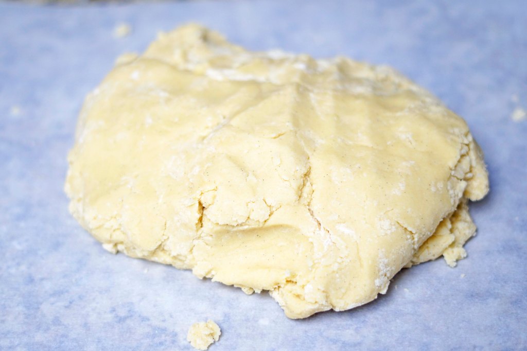 After the eggs and vanilla, I added the flour. The recipe didn’t specify if it was supposed to be an all in at once addition or gradual. I decided to add the flour in 3 additions. I only mixed until the majority of the flour disappeared and again on the lowest speed setting. I stopped mixing as soon as i saw the dough begin to pull away from the sides of the bowl. I did see some flour and scraps still at the bottom of the bowl, but not wanting to over mix the dough, I stopped mixing and kneaded the extras in by hand.