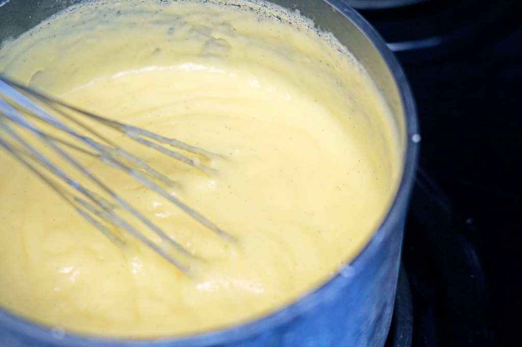 The flavor was amazingly sweet with a super strong vanilla flavor but super runny! So I tried again, this time I cooked it a little longer and made sure that I had the correct amount of corn starch that the recipe called for, and this time it turned out THICK! Super thick- my mom described it as having the flavor and texture of tapioca without the tapioca pearls. This texture might have its place for something, but it wasn’t the silky, delicious pastry cream that I was looking to master.
