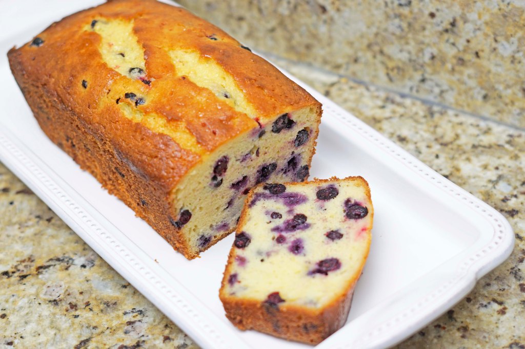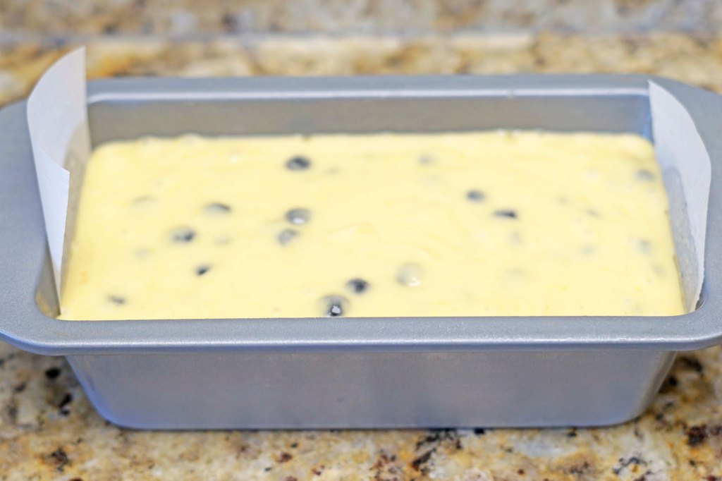 - Add 1 tablespoon of flour to the blueberries and toss until coated. Carefully fold the blueberries into the batter and pour the batter into the prepared pan.