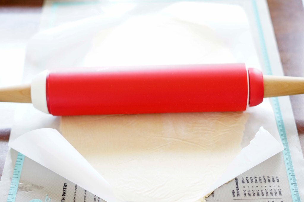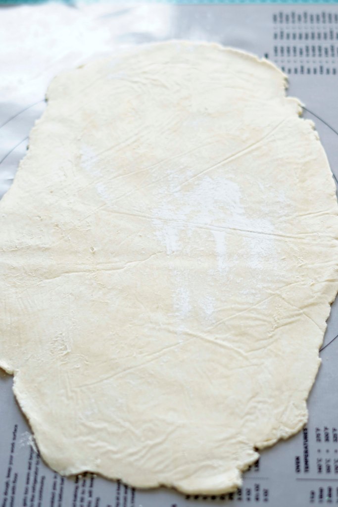 - Sprinkle your work surface with a small amount of flour and roll the dough thin.