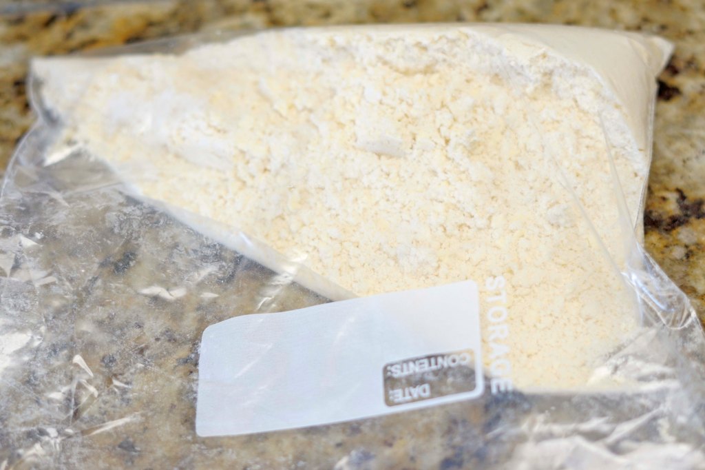 - Add the pastry flour, salt and baking powder to a gallon sized ziplock bag and put in the freezer for 30 minutes.