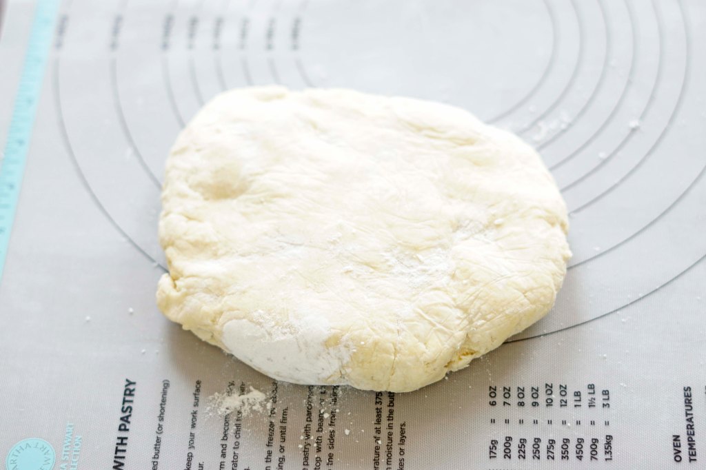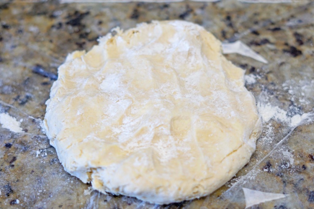 The ingredients for this recipe are 2 1/2 cups(289 g) King Arthur all-purpose flour (scooped & leveled), 1/2 teaspoon salt, 2 tablespoons buttermilk powder (I didn’t have this and the recipe said it was optional so I left it out), 1 cup of cold butter, 1/4 cup to 1/2 cup of ice water.