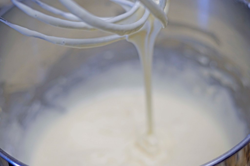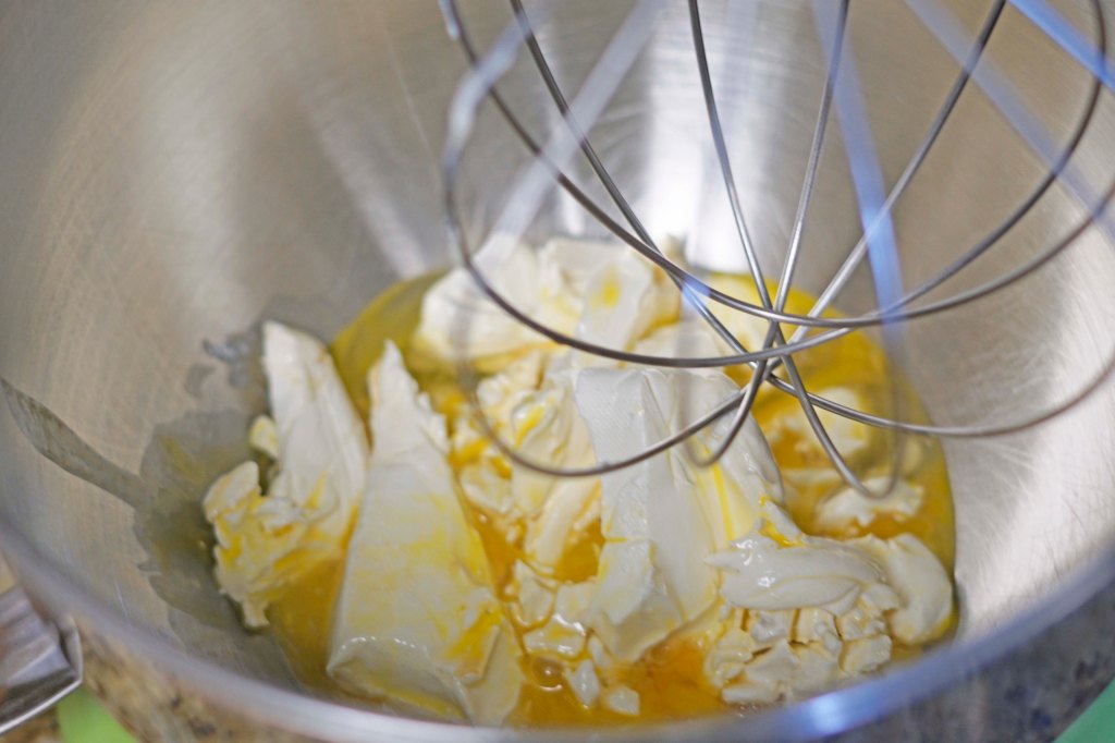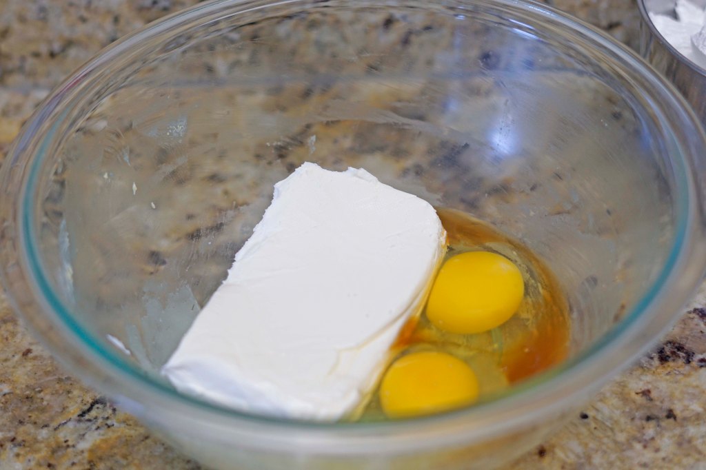 - Using your whisk on a stand mixer beat the cream cheese, eggs, powdered sugar and vanilla.