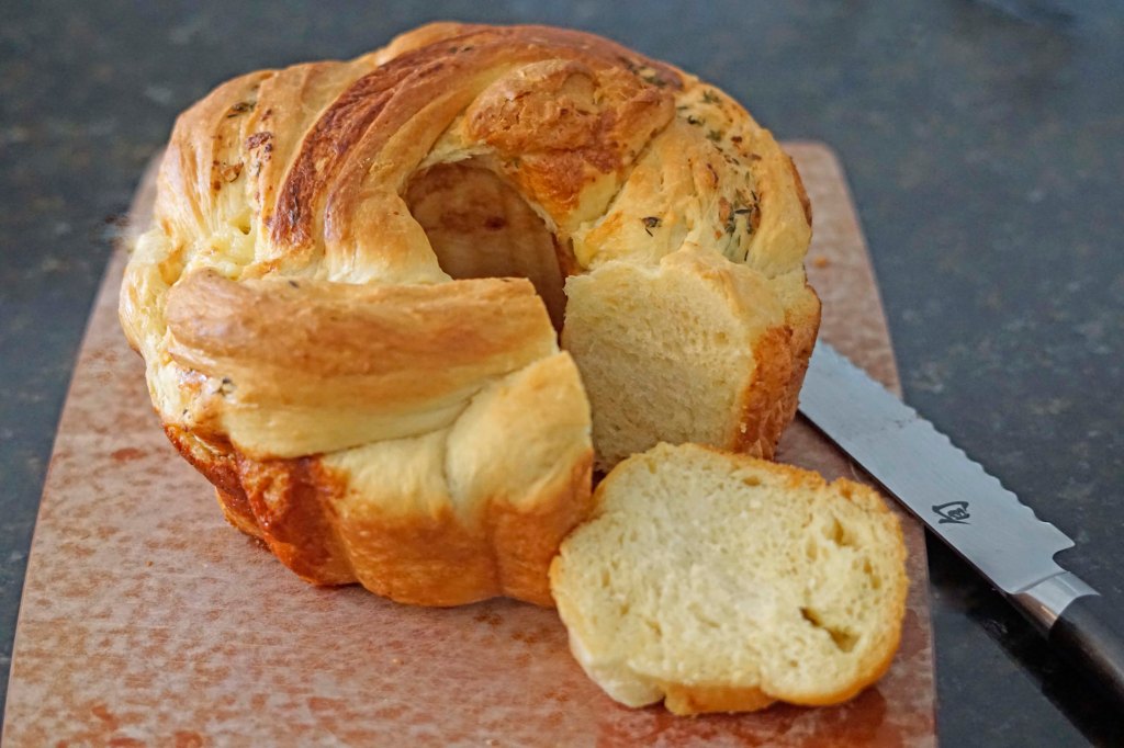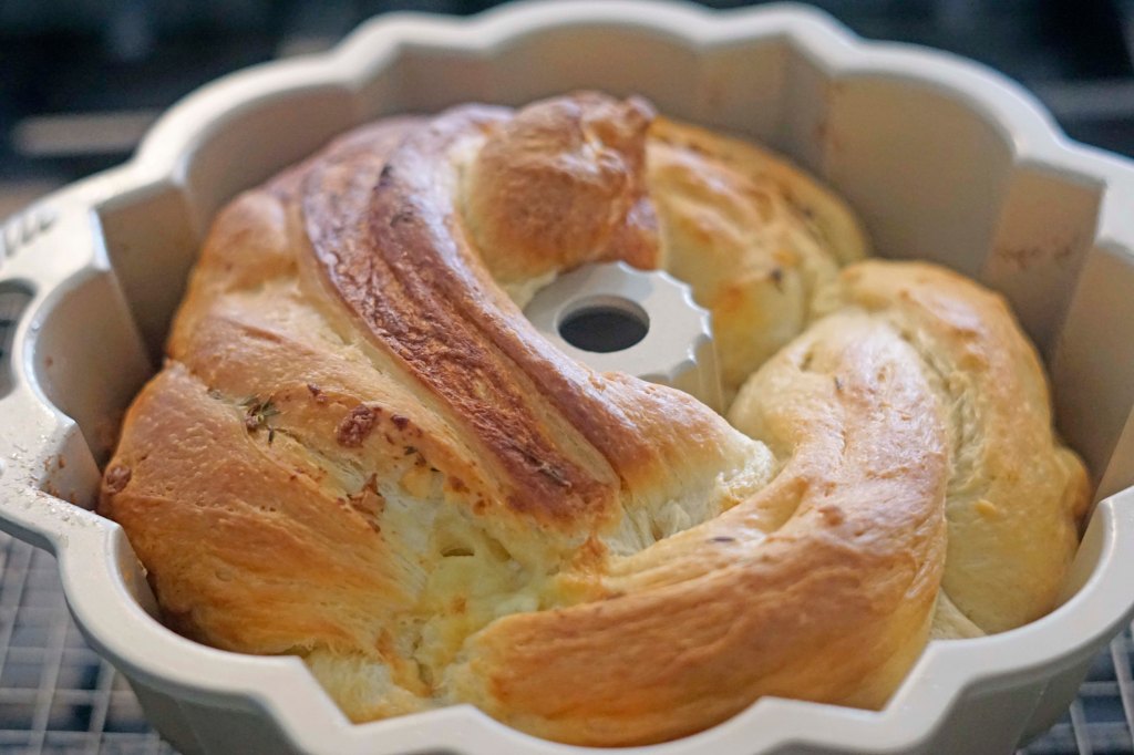 - I am wondering if this would be better braided and baked on a baking sheet instead of in a bundt pan to allow more sids of the bread to get crisp. The edges in the bundt pan were a little softer than I wanted them to be.