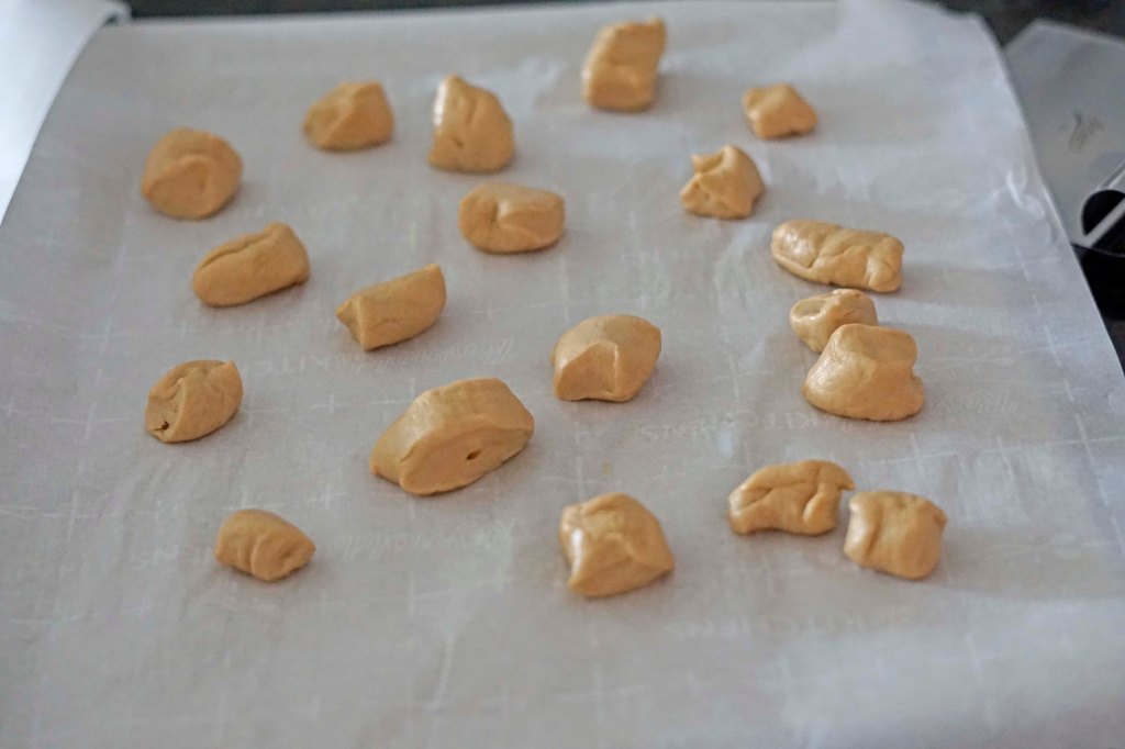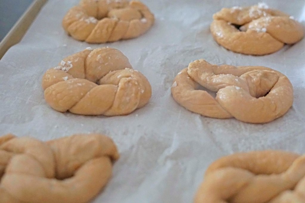 After the pretzels were shaped I put them onto a baking sheet. The twist is my favorite part of any pretzel, so I experimented by continuing to just twist the dough and then bring the ends together into a ring. I will probably only make twisted ring shapes in the future! I also made some ropes and cut them into little nugget shapes.