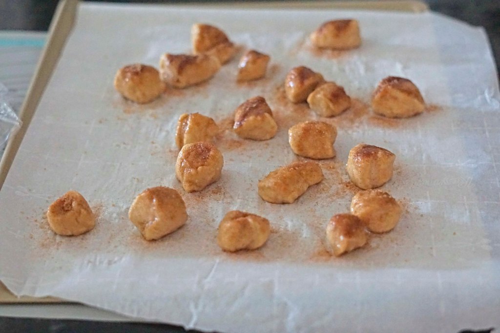 The cinnamon sugar nuggets were baked for 10 minutes at 425 F degrees and the sugar added a really nice delicate crisp to the top of these treats.