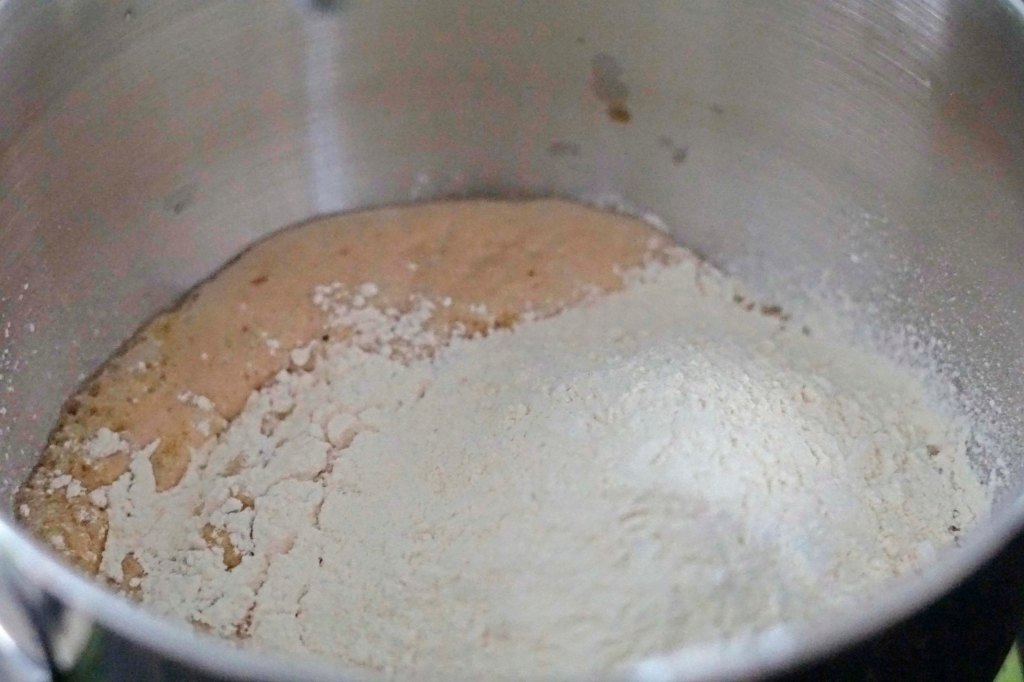 - In the bowl of a stand mixer combine the warm water, brown sugar and yeast. Briefly whisk and then allow to stand and bloom for 5 minutes.